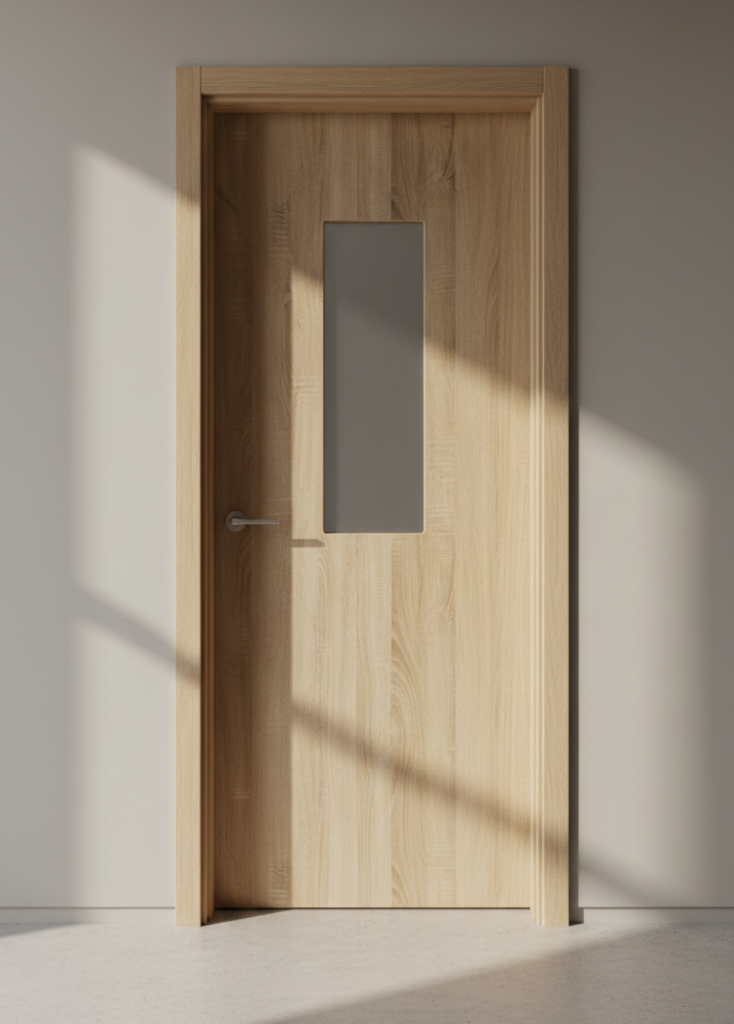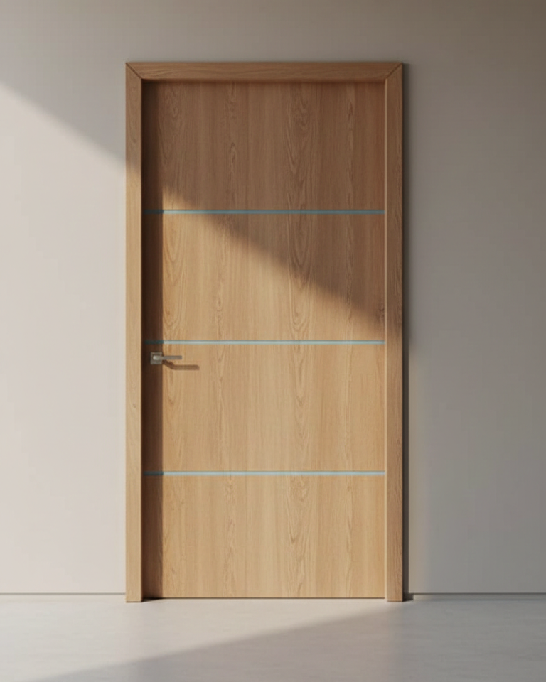 These are the smooth, flat doors you see in many modern apartments. No heavy carvings. No panels. Just clean and simple.